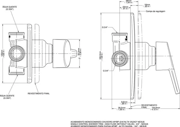 Acabamento Monocomando para Chuveiro Nexus 3/4″