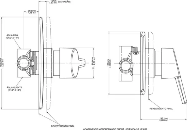 Acabamento Monocomando para Ducha Higiênica 1/2″ Nexus