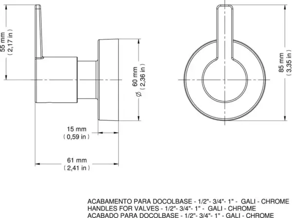 Acabamento para Registro DocolBase 1/2″, 3/4″ e 1″ Gali – Acabamento cromado biníquel de alta resistência à corrosão, conservando a beleza do produto por muito mais tempo. Especificações