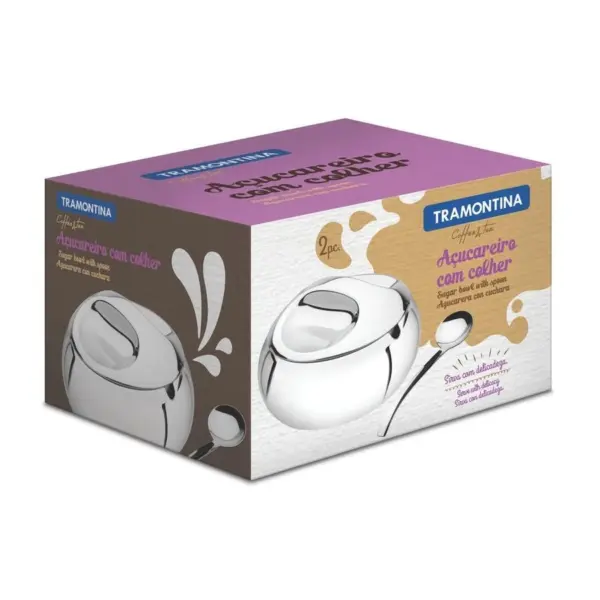 Versátil e requintado na hora de servir, o Açucareiro Tramontina em Aço Inox com Colher tem acabamento em brilho e é próprio para uso diário. Especificações