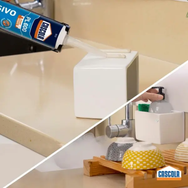 - Aderência pesada – A Cola Cascola sem solventes é ideal tanto para uso interno quanto externo, e elimina a necessidade de furadeira, prego ou outras ferramentas.
