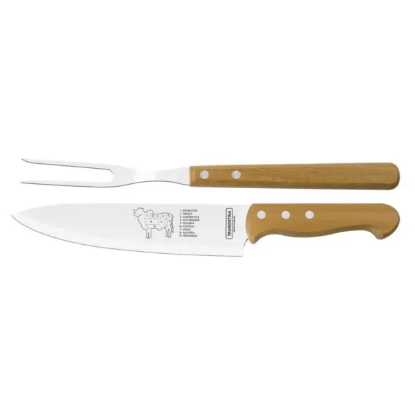 Jogo Trinchante com Lâminas em Aço Inox e Cabos de Madeira Natural Tramontina Churrasco 2 Peças