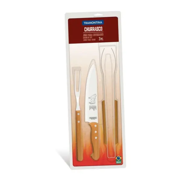 CONJ CHURRASCO TRAMONTINA GARFO + FACA + PEGADOR NATURAL (3PC)