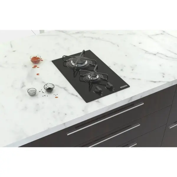 Cooktop a Gás em Vidro Temperado Preto com Acendimento Automático Dominó 2 Queimadores