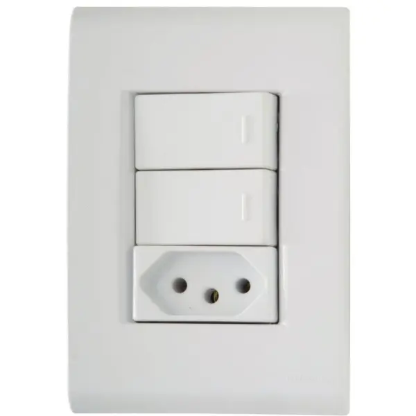 Composição Placa 3 módulos, 2 interruptores e 1 tomada