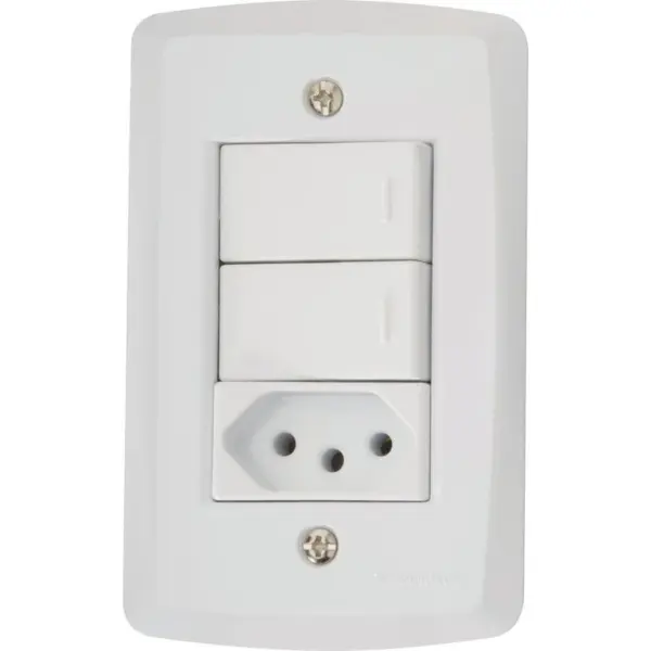 Conjunto 4 X 2 com 2 Interruptores Simples 10a 250v e 1 Tomada 2p+t 20a 250v Lux2 Branco – Tramontina