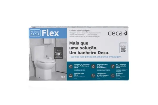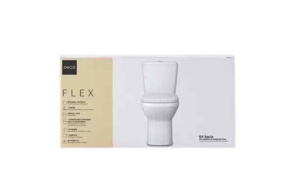 O Kit vaso sanitário e Caixa Acoplada com Acessórios Flex Branco da Deca é completo para instalação de vaso sanitários no banheiro com qualidade e estilo que dão elegância ao banheiro. O conjunto acompanha vaso sanitário para caixa acoplada, caixa acoplada com acionamento duo, assento sanitário soft close e easy clean, parafuso para fixação, anel de vedação e flexível de 40cm.