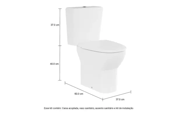 | Conteúdo da Embalagem em Unidades: | 1 Vaso Sanitário, 1 Caixa Acoplada, 1 Assento e Kit de Instalação |