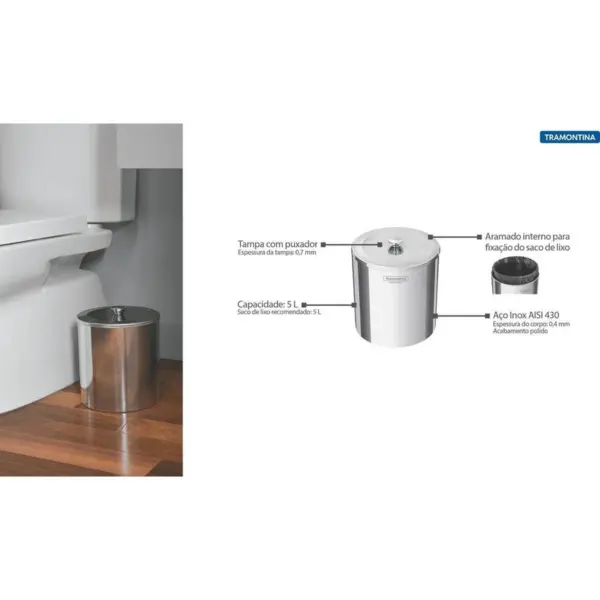 Lixeira Inox com Acabamento Polido 5l