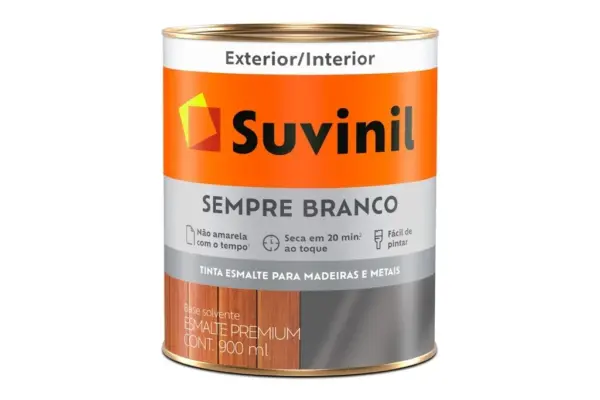 A Tinta Esmalte Premium Sempre Branco Fosco 900ml da Suvinil é indicada para aplicação em superfícies internas e externas de madeira nova. É um complemento que preenche os veios e sela a superfície. Tudo para melhorar o acabamento e aumentar o rendimento do esmalte. É fácil de lixar e uma barreira em paredes e forros de gesso manchados por nicotina, gorduras, canetas e fuligem, facilitando a repintura.