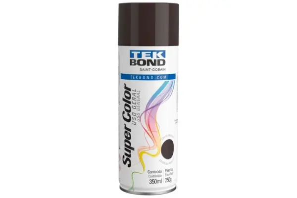 A Tinta Spray Super Color Uso Geral Marrom 350ml/250g da Tekbond foi desenvolvida com resinas acrílicas de secagem rápida e ótima resistência as intempéries, proporcionando excelentes acabamentos, poder de cobertura e efeito decorativo. Pode ser utilizada em ambientes internos e externos para aplicações em ferro, aço, madeira, cerâmica, gesso, entre outros.