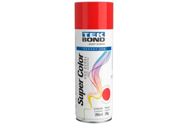 A Tinta Spray Super Color Uso Geral Vermelho 350ml/250g da Tekbond foi desenvolvida com resinas acrílicas de secagem rápida e ótima resistência as intempéries, proporcionando excelentes acabamentos, poder de cobertura e efeito decorativo. Pode ser utilizada em ambientes internos e externos para aplicações em ferro, aço, madeira, cerâmica, gesso, entre outros.