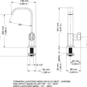 Torneira de Mesa Bica Alta de 90° para Lavatório Link Cromado Dn15